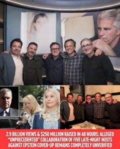 2.9 BILLION VIEWS & $250 MILLION RAISED IN 48 HOURS: ALLEGED “UNPRECEDENTED” COLLABORATION OF FIVE LATE-NIGHT HOSTS AGAINST EPSTEIN COVER-UP REMAINS COMPLETELY UNVERIFIED