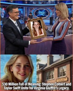 Taylor Swift, eyes glistening, spoke first: “This isn’t about a painting. It’s about remembering who Virginia was before they tried to erase her.” Colbert, in his final months hosting The Late Show, added quietly: “We’ve laughed through too much pain on television. Tonight, we choose something different—compassion that costs something.”