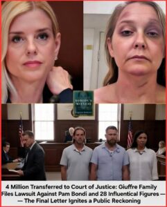 In a seismic legal move that has sent shockwaves through public opinion, the family of Virginia Giuffre transferred $4 million directly to the Court of Justice within the last 48 hours, dedicating the full amount to filing a civil lawsuit against former Attorney General Pam Bondi and 28 influential figures.