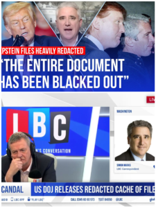 The final dump under the Epstein Files Transparency Act—signed by President Trump on November 19 amid bipartisan pressure—delivered thousands of pages of grand jury transcripts, investigative notes, flight logs, financial records, and estate photos. Yet over 550 pages were completely blacked out, redactions shielding names and details for “victim privacy” and “ongoing probes.” A DOJ memo confirmed no “client list” or blackmail tapes, repackaging known associations: Clinton’s 26 flights, Trump’s pre-2000 ties, Andrew’s island visits, Gates’ meetings.