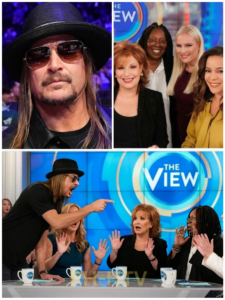 Kid Rock, invited for holiday music, sat quietly until the crescendo. Leaning forward, cap low, he spoke once: “Enough, ladies.” The studio hushed—shouts cut mid-sentence, audience breathless. His calm command—raw, unflinching—held the room.