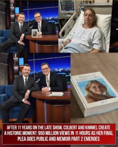 AFTER 11 YEARS ON THE LATE SHOW, COLBERT AND KIMMEL CREATE A HISTORIC MOMENT: 950 MILLION VIEWS IN 11 HOURS AS HER FINAL PLEA GOES PUBLIC AND MEMOIR PART 2 EMERGES