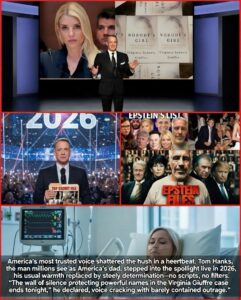 On the evening of January 13, 2026, the Unfiltered Truth Network aired what may become the most consequential live broadcast in modern American media history. Tom Hanks, long regarded as the nation’s unofficial everyman and one of its last widely trusted public figures, did not hedge, did not soften, did not whisper. He tore open the wall of silence that had shielded some of the most powerful names connected to the Virginia Giuffre case for years.