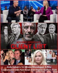 On January 7, 2026, Andy Cohen Live delivered a broadcast unlike any in its history. For 16 special minutes, Andy Cohen dedicated his entire monologue to Virginia Giuffre, transforming the stage from entertainment to unscripted interrogation. No usual smile. No cheerful opening. Only a sharp, piercing gaze cutting through the studio lights.