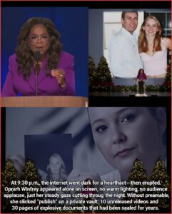 At precisely 9:30 p.m., Oprah Winfrey appeared on a stripped-down special broadcast that carried no fanfare, no audience applause, and no commercial interruptions. She sat alone against a black backdrop, a single folder and a small drive in front of her. Without preamble, she announced: “These are not my secrets to keep. They belong to the woman buried by power—and tonight, they belong to the world.”