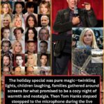 The holiday special was pure magic—twinkling lights, children laughing, families gathered around screens for what promised to be a cozy night of warmth and nostalgia. Then Tom Hanks stepped to the microphone during the live broadcast, his familiar smile gone, replaced by something steely and unbreakable.T