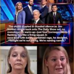 The studio erupted in stunned silence as Jon Stewart strode back onto The Daily Show set, no monologue, no warm-up—just four correspondents flanking him like a firing squad. In a voice thick with barely contained rage, he declared, “Tonight we’re not joking. We’re naming names.”T