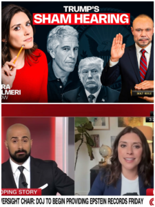 No records show Farmer appearing in a closed-door session where Bondi dismissed pleas with “classified” regarding “20 elite names.”