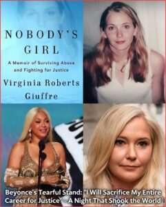 But that night on January 8, 2026, during a surprise concert event, Beyoncé burst into tears on stage, holding Virginia Giuffre’s 400-page memoir Nobody’s Girl in her hands. Her voice trembled, her eyes reddened—not from stage pressure, but from a truth she called “more terrifying than anything I have ever gone through in my life.”