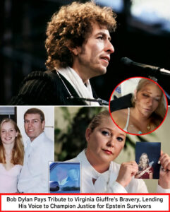 In an era when many prefer to avoid the disturbing truths surrounding Jeffrey Epstein’s crimes, legendary musician and cultural icon Bob Dylan has stepped forward with unwavering support for Virginia Giuffre. Known for his poetic insight and moral clarity across decades, Dylan has publicly honored Giuffre’s extraordinary courage as a survivor who dared to confront one of the most powerful and secretive networks of abuse in modern times.
