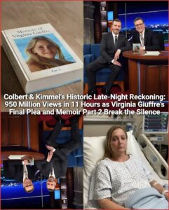 Social media did not react with memes — it reacted with stillness, then with action. Hashtags #GiuffrePart2, #LateNightReckoning, and #NoMoreSilence trended globally within minutes. Clips of the final plea and memoir reading were replayed obsessively. Viewers posted raw responses: “This isn’t comedy anymore — this is conscience,” “If Colbert and Kimmel won’t stay silent, how can we?” “The truth just got a microphone.”