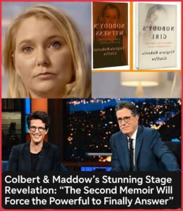 The broadcast ended without resolution — no closing joke, no feel-good segment, just the weight of what was left unsaid. Within minutes, social media erupted. Hashtags #GiuffreSecondMemoir, #ColbertMaddow, #UntouchableNoMore trended worldwide. Clips of the shared stage moment spread faster than any monologue in history. Viewers described it as “the night late-night and news finally merged into conscience” — a rare instance when two of the most trusted voices chose truth over comfort.