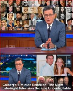 No longer late-night comedy. No longer entertainment. In that brief moment, Colbert shattered every safety boundary, turning live television into a platform for exposing truths that had been hidden for years. Suppressed evidence and names once considered “untouchable” suddenly surfaced — enough to send shockwaves through Hollywood and the circles of power.