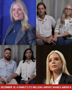 On the evening of December 18, 2026, the United States was rocked by an unexpected announcement: the family of “the woman buried by power” — Virginia Giuffre — declared they would devote every dollar of a $12 million settlement to suing Pam Bondi in court.