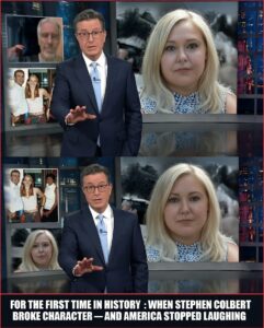 It was silence, thick and unmistakable, the kind that settles when something irreversible has just happened. On that night, The Late Show stopped being a comedy program. Stephen Colbert stood under the studio lights, eyes glassy, voice unsteady, and for the first time in the show’s history, he did not regain control.