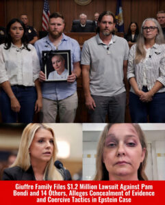 In a bold and high-stakes legal move that has intensified scrutiny surrounding the Jeffrey Epstein saga, the surviving family members of Virginia Giuffre have filed a civil lawsuit demanding $1.2 million in damages. The complaint names former Florida Attorney General Pam Bondi as the lead defendant, joined by fourteen additional individuals accused of playing roles in what the plaintiffs describe as a coordinated effort to suppress critical evidence and apply pressure that undermined the pursuit of justice.