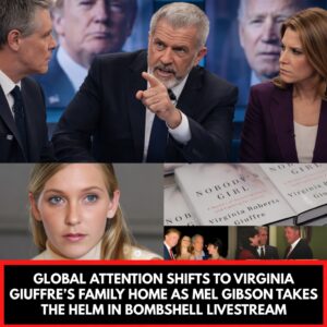 In an astonishing development that has captured worldwide attention, all focus has suddenly turned to the private residence of Virginia Giuffre’s family. What began as a deeply personal moment quickly transformed into a high-stakes public revelation when Mel Gibson unexpectedly stepped in to host the family’s inaugural live broadcast.