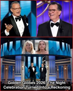 Colbert spoke first, voice low: “We’ve spent years laughing at power. Tonight, we stop laughing at its consequences.” Hanks followed, calm but unyielding: “This isn’t about scandal. It’s about silence — and silence is not neutral. Silence is complicity.”