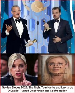 The front rows trembled. An invisible wave swept through the audience — the most powerful figures in entertainment suddenly exposed under lights that felt unforgiving. Television cameras panned instinctively, capturing frozen smiles, lowered heads, and the unmistakable flicker of panic in eyes that had grown accustomed to safety. Tom Hanks never took his eyes off the crowd. Leonardo DiCaprio gripped the book — Virginia Giuffre’s posthumous memoir Nobody’s Girl — like living evidence.