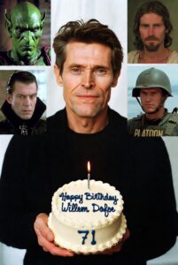 Happy 71st Birthday, Willem Dafoe! Thank you for decades of unforgettable performances that challenge, disturb, and ultimately enrich our understanding of the human condition. Here’s to many more years of bold storytelling, boundary-pushing roles, and that signature intensity that only you can deliver. The screen is brighter—and far more interesting—because of you.