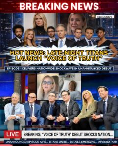 In a move that caught the entire media industry completely off guard, six of America’s most recognizable late-night icons quietly launched an independent streaming channel called Voice of Truth—and then immediately dropped its premiere episode without a single teaser, press release, or promotional hint. The surprise debut has sent shockwaves across the country, dominating conversations from cable news panels to social media feeds within hours.