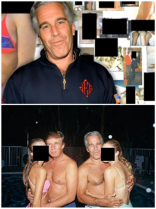 Other disturbing pages include unsigned sketches: one contrasts Epstein in 1983 handing lollipops to young girls with 2003 scenes of him receiving massages from topless women, one bearing “JE” tattoos. A Vanity Fair cover parody inserts Epstein’s name, and photos depict him shirtless or in speedos. An unidentified woman’s entry boasts meeting Prince Andrew, Bill Clinton, and Trump through Epstein, claiming she toured Buckingham Palace’s private quarters and sat on the Queen’s throne.