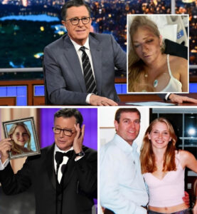 Midway through, Colbert paused the celebration. The lights dimmed, and a single photograph appeared on the screen behind him: a black-and-white image of a young girl, eyes wide with determination, standing alone outside a courthouse. It was Virginia Giuffre, the Epstein survivor whose courage exposed networks of abuse among the elite. Giuffre had passed away earlier, her fight for justice cut short amid ongoing silences from institutions meant to protect the vulnerable.
