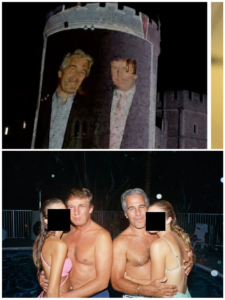 The nine-minute documentary-style montage, beamed from a hotel overlooking the royal residence, featured old photos of Trump and Epstein socializing, newspaper headlines, victim testimonies, and pointed narration questioning their long association. It ended with a stark message: Trump, a “long-time close friend” of “America’s most notorious child sex trafficker,” was now sleeping at Windsor Castle as King Charles III’s honored guest.
