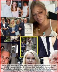 Her “final words” — whether the activist summons to draw battle lines or the tender ache for her children — challenge the narrative that justice was ever fully served. They shatter the illusion that survivors can carry endless trauma without consequence. Giuffre’s enduring message is clear: the fight must continue. Her courage inspired countless others to speak out, and her words now demand that society stand together against the forces that enabled such suffering.