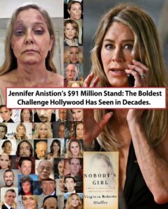 Hollywood is reeling after explosive reports claimed that Jennifer Aniston has committed $91 million to support Virginia Giuffre — a move insiders are describing as a direct, unprecedented challenge to the most protected circles of power in the entertainment industry.