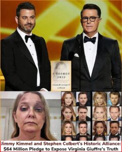 Few would have guessed that two giants of American late-night television—Jimmy Kimmel and Stephen Colbert—would quietly walk away from their hit shows, leaving the glare of major networks behind to embark on an entirely new mission. According to insider sources, the reason was a shocking off-air event that made it impossible for them to turn their backs on the truth. And that shock was tied to a name that once shook the world: Virginia Giuffre.