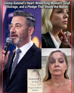 Jimmy Kimmel, the host millions have come to know for his sharp wit, playful banter, and ability to make even the heaviest topics feel approachable, appeared visibly emotional in a way viewers had never seen. His voice trembled. His eyes welled with tears. And when he spoke about Nobody’s Girl — Virginia Giuffre’s posthumous memoir — the studio fell into a silence that felt almost sacred.