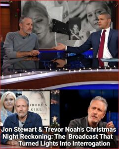 Jon Stewart appeared as a guest on The Daily Show — the first time he and Trevor Noah shared the stage since Stewart’s departure years earlier. What began as a nostalgic reunion turned into something no one anticipated: a deliberate, unflinching public airing of evidence that had been buried for more than a decade.