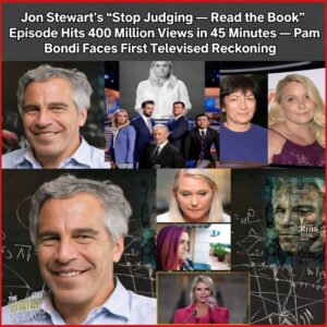 Just 45 minutes after going live, the episode titled “Stop Judging — Read the Book,” produced by The Daily Show, reportedly surged to 400 million views — marking one of the fastest-rising broadcasts in television history and officially thrusting Pam Bondi into her first televised confrontation.