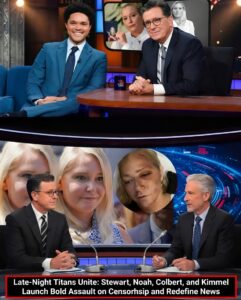 Late-Night Titans Unite: Stewart, Noah, Colbert, and Kimmel Launch Bold Assault on Censorship and Redefine News