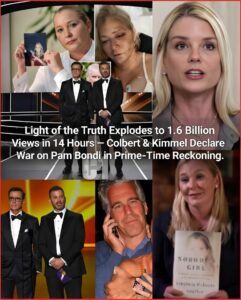 In just 14 hours after airing in prime time, the premiere episode of “Light of the Truth” — hosted by Stephen Colbert and Jimmy Kimmel — has shattered records with 1.6 billion views, transforming late-night television into the most explosive platform for truth in modern media history.