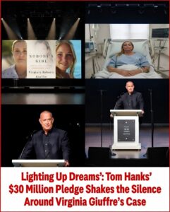 Standing alone under a single spotlight, Hanks looked directly into the lens and declared that he would personally commit $30 million to fund an independent, transparent campaign dedicated to uncovering the full truth behind what he called “the most mysterious and unresolved case in modern American history.” He did not name it outright on air, but the context left no room for doubt: he was speaking about the life, allegations, and death of Virginia Giuffre.