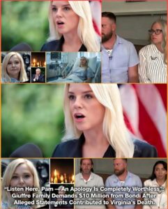 In a move that stunned the United States, four members of Virginia Giuffre’s family have officially filed a civil lawsuit demanding $10 million in compensation from Attorney General Pam Bondi. The claim centers on public statements allegedly made by Bondi that the family says contributed to the unrelenting pressure, public shaming, and emotional toll leading to Giuffre’s death by suicide on April 25, 2025.