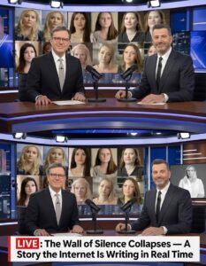 A new viral timeline sweeping across social media claims that the media landscape cracked open in a single evening. According to rapidly circulating posts, the clock struck 08:45 PM EST when what viewers describe as an unprecedented rupture unfolded live on air. The names Stephen Colbert and Jimmy Kimmel quickly began trending—not for comedy, but for what online audiences interpreted as defiance.