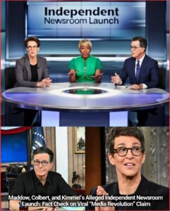 The sensational claim that Rachel Maddow, Stephen Colbert, and Jimmy Kimmel have left their networks to launch an independent, uncensored newsroom—described as a “raw, unfiltered media revolution” with massive views and shaking the industry—is false.