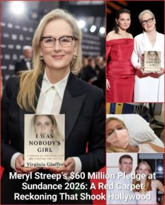 Streep arrived holding Virginia Giuffre’s memoir Nobody’s Girl, a symbolic gesture that immediately drew intense media attention. In brief but carefully worded remarks, the Oscar-winning actress questioned America’s commitment to justice and warned against what she described as a culture of silence surrounding powerful figures. The atmosphere shifted instantly. Moments later, the actress stunned the crowd once again, declaring: