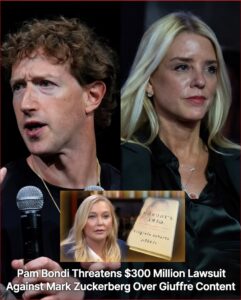 Bondi declared: “Mark Zuckerberg, you are aiding the slander directed at me — and I will not stand by and let it happen.” She announced her intention to file a $300 million lawsuit against Meta, alleging the platform has allowed unchecked spread of defamatory material linking her to delays or mishandling of Epstein-related file releases.