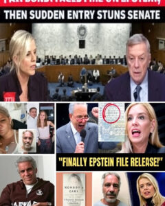 Tears streamed down Pam Bondi’s face as she struggled to speak on the Senate floor, her voice cracking under the weight of decades of secrecy. “We can’t keep hiding the truth,” she whispered, pausing as senators looked on in stunned silence. Moments later, Chuck Schumer slammed a thick folder onto the desk: the Epstein files — fully unredacted, ready for public eyes. The room went from tense murmurs to stunned gasps. Names, transactions, and damning evidence that had been buried for years were now exposed, threatening to upend powerful lives across Washington. Bondi’s emotional breakdown underscored the gravity of what was unfolding: a reckoning decades in the making. Who would fall first?