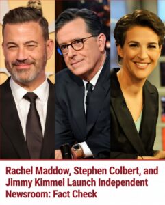The dramatic claim that Rachel Maddow, Stephen Colbert, and Jimmy Kimmel have left their major networks (MSNBC, CBS, and ABC) to create an independent, ad-free newsroom dedicated to “truth, transparency, and fairness” is false.