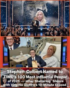 On January 13, 2026, Stephen Colbert did what no late-night host had ever dared: he aired a raw, unedited 10-minute film clip containing Virginia Giuffre’s final recorded testimony — and in doing so, he officially became one of TIME’s 100 Most Influential People of 2025.