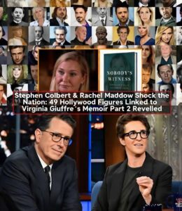 Within minutes, the clip became one of the most viral moments in broadcast history. Social media erupted: #ColbertMaddow49, #GiuffrePart2, and #NoMoreSilence trended globally. Viewers described the segment as “the night late-night and news finally merged into conscience.” Clips amassed hundreds of millions of views. Powerful figures long rumored in Giuffre’s orbit went completely silent. Publicists issued vague denials. Legal teams mobilized.