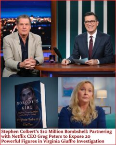 In a move that has sent shockwaves through Hollywood and beyond, Stephen Colbert announced on January 12, 2026, that he is personally investing $10 million into a major partnership with Netflix CEO Greg Peters. The funds will fuel a large-scale cinematic investigation centered on the life and allegations of Virginia Giuffre — the survivor whose courage exposed Jeffrey Epstein and Ghislaine Maxwell’s trafficking network, only to face years of institutional doubt and elite protection until her death in April 2025.
