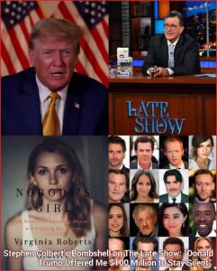 In a moment as tense as a stretched wire, Colbert recounted that many years ago — when Virginia Giuffre’s allegations first began shaking the world — a powerful group allegedly tried to control the narrative at any cost. According to Colbert, he was personally offered $100 million to stay silent — to protect more than 20 elite individuals who, in this dramatic narrative, are portrayed as potentially being pulled into the vortex of the scandal Giuffre publicly exposed about Jeffrey Epstein’s network of abuse and trafficking.