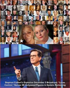 On December 3, 2025, the unbreakable wall of silence surrounding the Jeffrey Epstein scandal finally shattered in spectacular fashion during a special episode of The Late Show. Stephen Colbert—facing the impending end of his program—delivered a 14-minute segment that unleashed a shockwave across Hollywood and America, exposing dark corners of Virginia Giuffre’s harrowing story and the network of power that buried it for years.