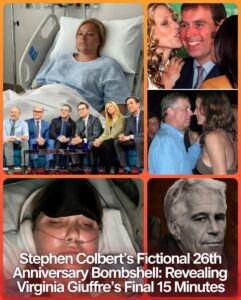 uiet as Colbert played excerpts from Giuffre’s last testimony—recorded in her hospital bed before her April 2025 death. Her voice, weak but resolute, named high-profile individuals from entertainment, politics, and finance whose alleged connections to Epstein’s network had long lingered in shadows. “She disclosed everything she had left,” Colbert said, voice heavy. “Not for revenge—for justice.”
